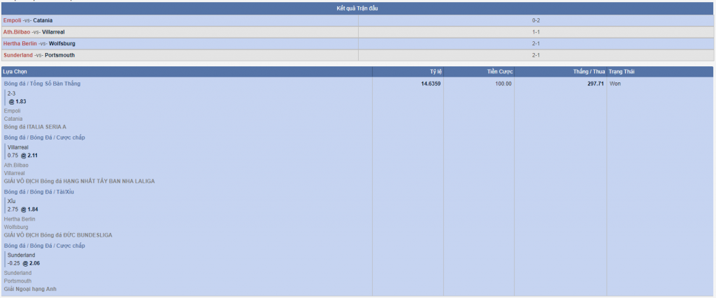 - Nếu thắng lấy tỷ lệ cược nhân với tỷ lệ cược tiếp theo